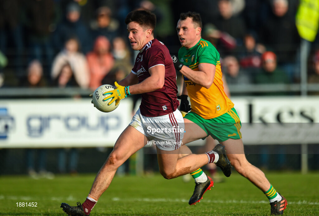 9 February 2020; Sean Kelly of Galway in action against Conor O'Donnell of Donegal during the Allianz Football League Division 1 Round 3 match between Donegal and Galway at O'Donnell Park in Letterkenny, Donegal. Photo by Oliver McVeigh/Sportsfile