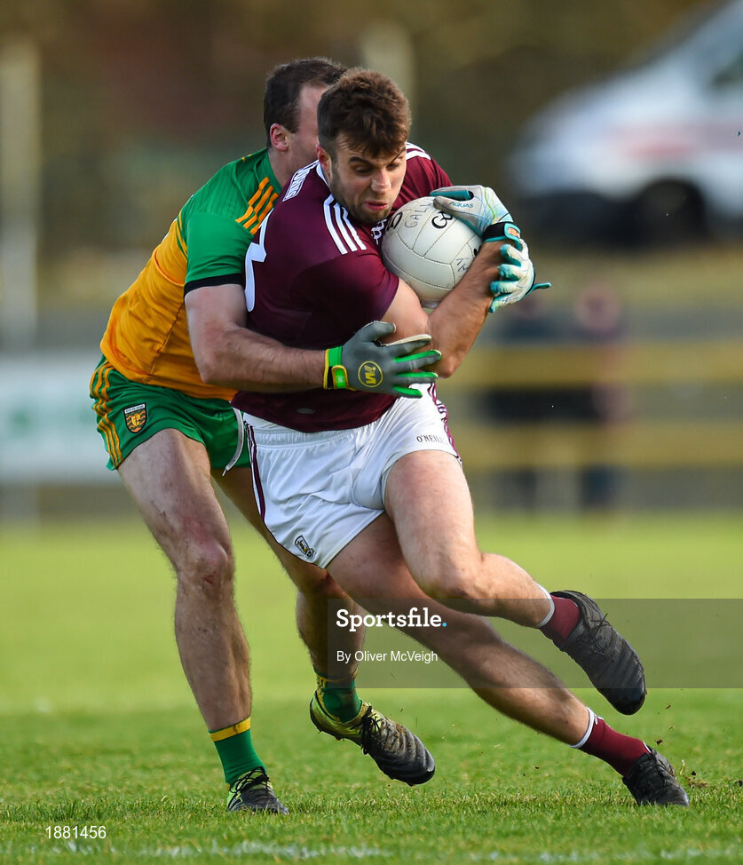 9 February 2020; Paul Conroy of Galway in action against Neil McGee of Donegal during the Allianz Football League Division 1 Round 3 match between Donegal and Galway at O'Donnell Park in Letterkenny, Donegal. Photo by Oliver McVeigh/Sportsfile