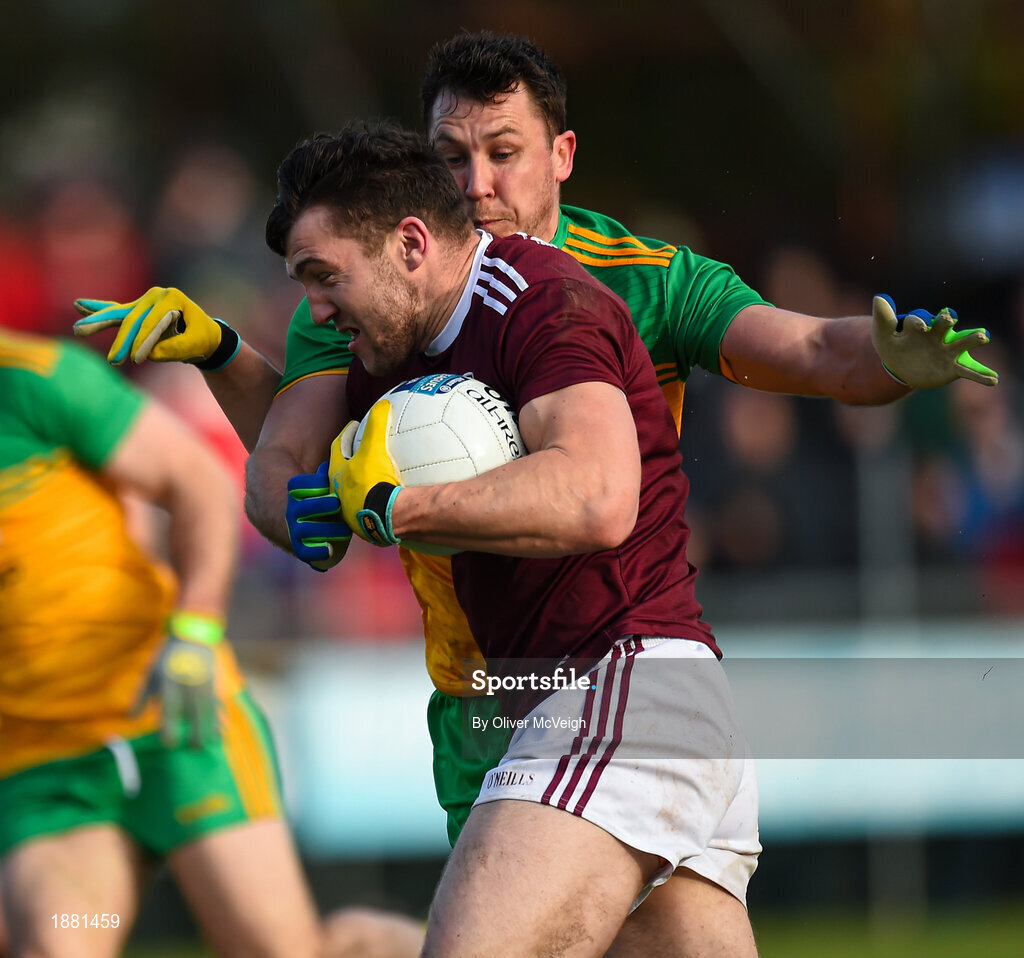 9 February 2020; Damien Comer of Galway in action against Paul Brennan Donegal during the Allianz Football League Division 1 Round 3 match between Donegal and Galway at O'Donnell Park in Letterkenny, Donegal. Photo by Oliver McVeigh/Sportsfile