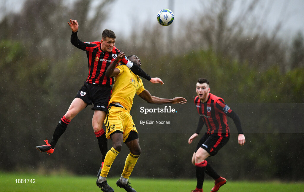 8 February 2020; Mick McDonnell of Longford Town in action against Reyon Dillon of Cork City during the pre-season friendly match between Cork City and Longford Town at Cork City training ground in Bishopstown, Cork. Photo by Eóin Noonan/Sportsfile