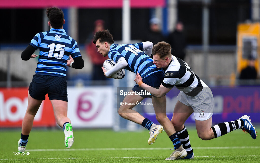 10 February 2020;Alex Watson of St Vincent's Castleknock College is tackled by Patrick O'Farrell of Belvedere College during the Bank of Ireland Leinster Schools Senior Cup Second Round match between Belvedere College and St Vincent's Castleknock College at Energia Park in Dublin. Photo by Piaras Ó Mídheach/Sportsfile