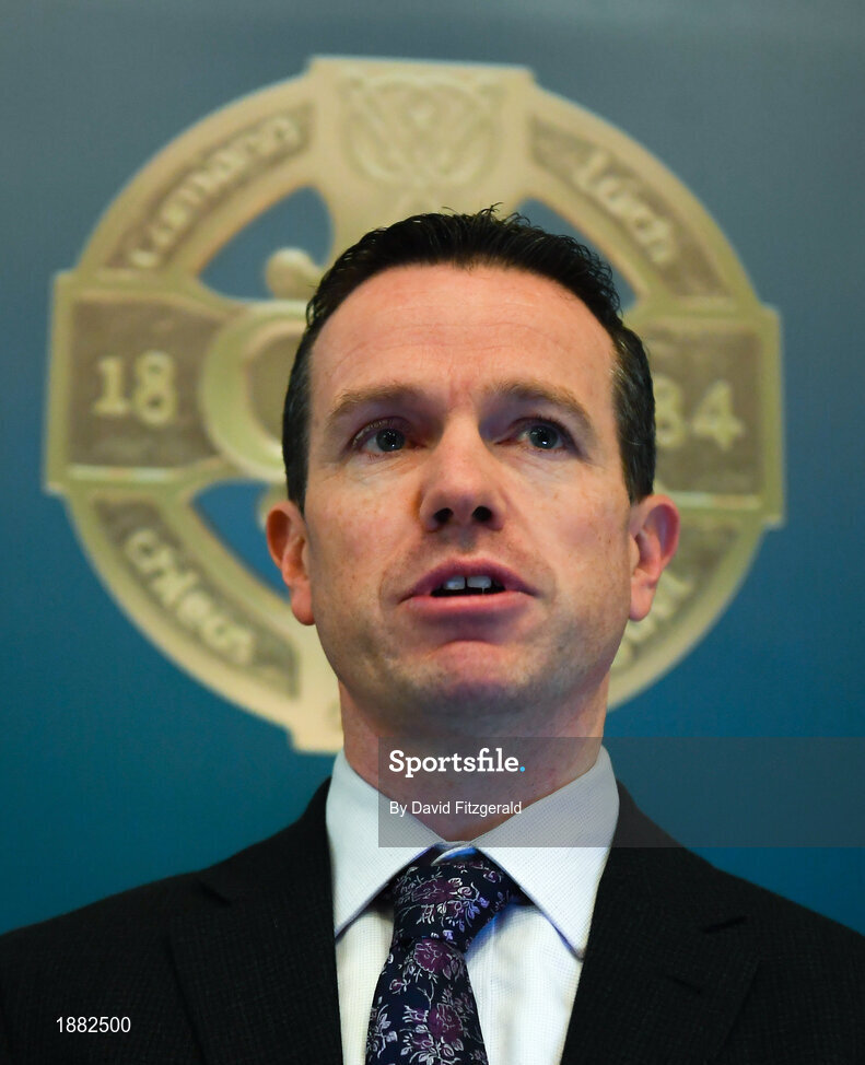 11 February 2020; Director of Finance of the GAA Ger Mulryan addresses the media during the GAA/Croke Park Financial Reports and Director General’s Annual Report Media Briefing at the GAA Museum in Croke Park, Dublin. Photo by David Fitzgerald/Sportsfile