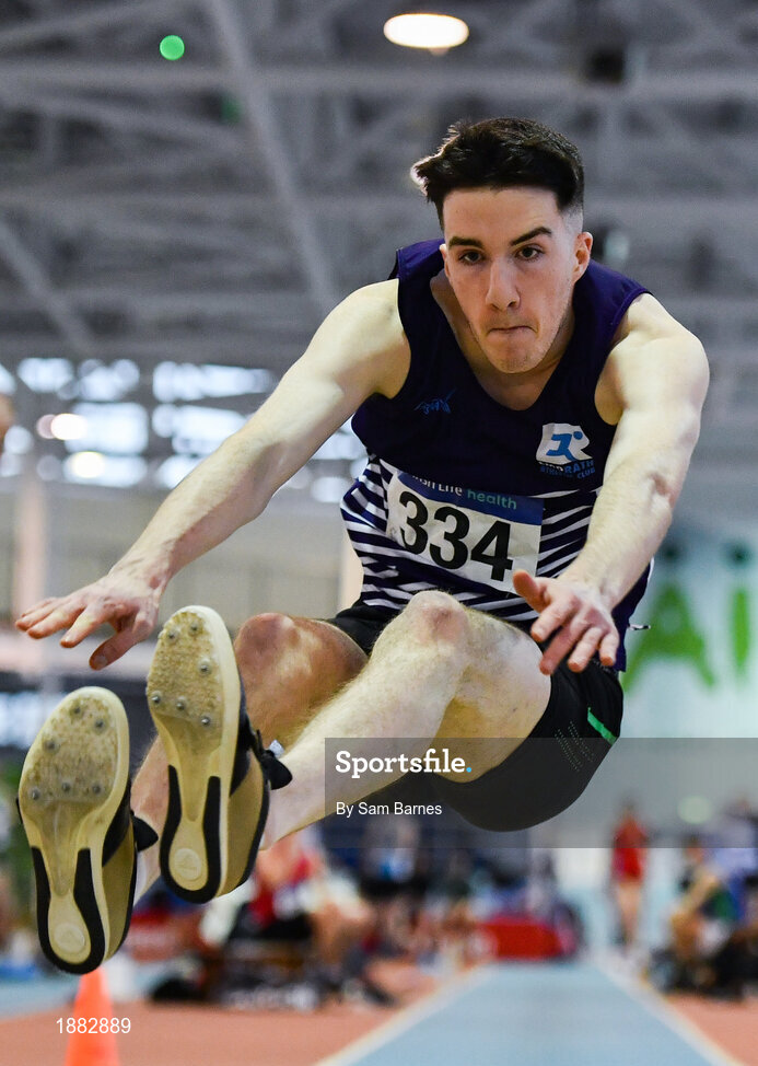 25 January 2020; Eoin Keenan of Emo/Rath AC, competing in the U23 Men's Long Jump during the Irish Life Health National Indoor Junior and U23 Championships at the AIT Indoor Arena in Athlone, Westmeath. Photo by Sam Barnes/Sportsfile