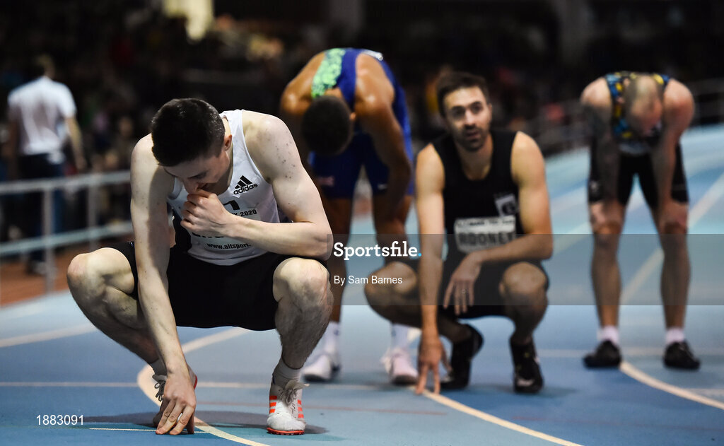 12 February 2020; Mark English of Ireland reacts after finishing fifth in the final of the Athletics Ireland Men's 600m event during the AIT International Grand Prix 2020 at AIT International Arena in Athlone, Westmeath. Photo by Sam Barnes/Sportsfile