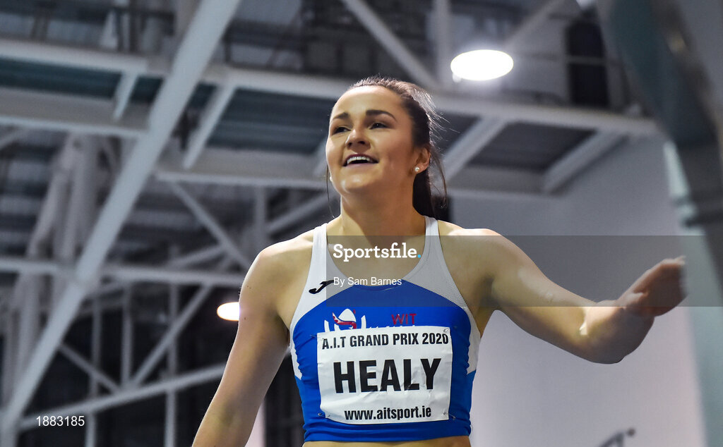 12 February 2020; Phil Healy of Ireland after winning the final of the Hodson Bay Hotel Women's 200m event during the AIT International Grand Prix 2020 at AIT International Arena in Athlone, Westmeath. Photo by Sam Barnes/Sportsfile