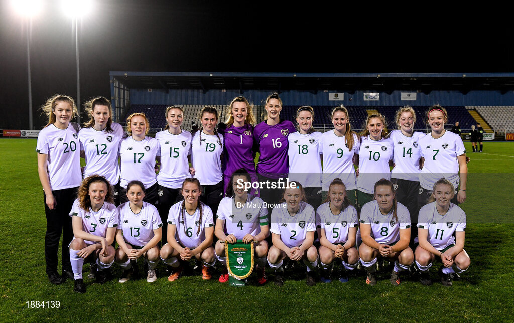 14 February 2020; The Republic of Ireland squad before the Women's Under-17s International Friendly between Republic of Ireland and Iceland at the RSC in Waterford United. Photo by Matt Browne/Sportsfile