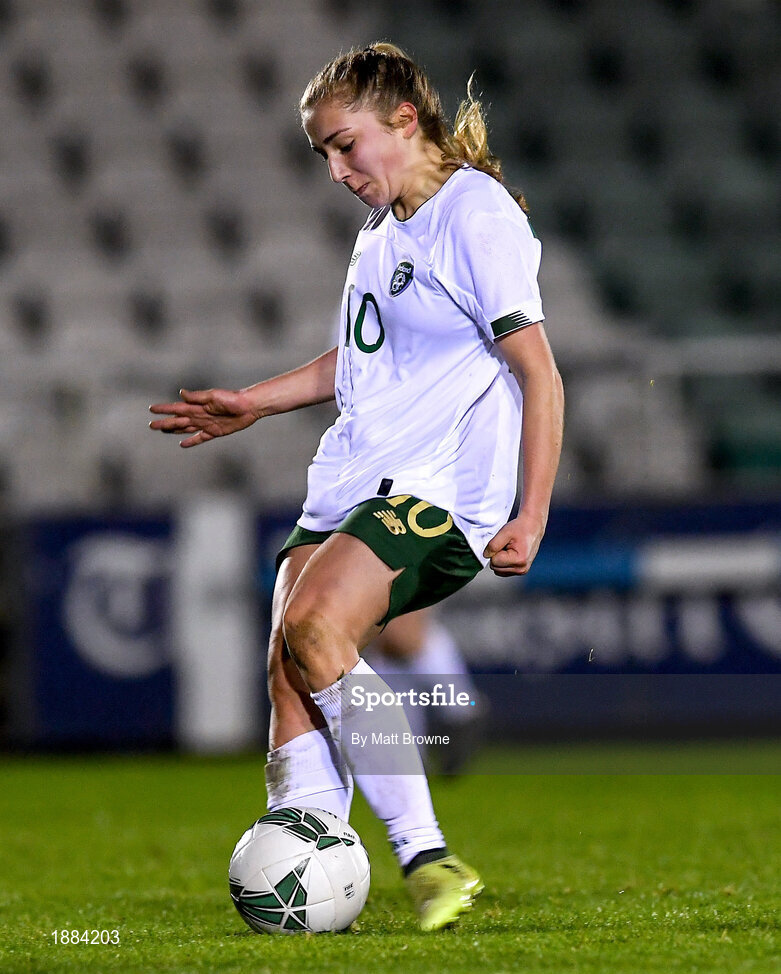 14 February 2020; Ellen Molloy of Republic of Ireland on her way to scoring her side's first goal during the Women's Under-17s International Friendly between Republic of Ireland and Iceland at the RSC in Waterford United. Photo by Matt Browne/Sportsfile