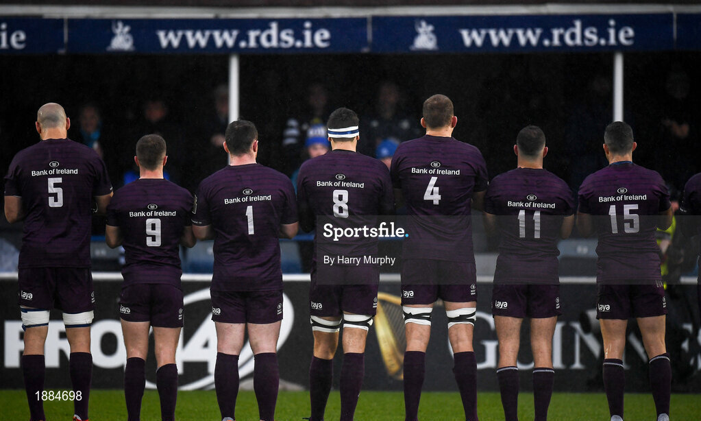 15 February 2020; The Leinster team stand for a moment of silence before the Guinness PRO14 Round 11 match between Leinster and Toyota Cheetahs at the RDS Arena in Dublin. Photo by Harry Murphy/Sportsfile
