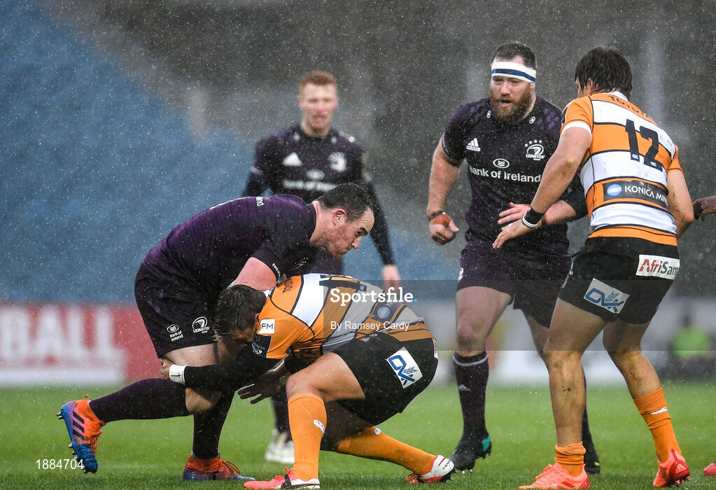 15 February 2020; Peter Dooley of Leinster is tackled by Rabz Maxwane of Toyota Cheetahs during the Guinness PRO14 Round 11 match between Leinster and Toyota Cheetahs at the RDS Arena in Dublin. Photo by Ramsey Cardy/Sportsfile