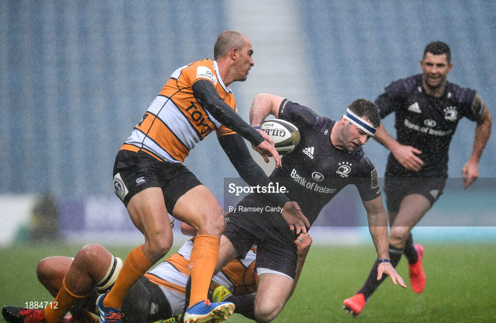 15 February 2020; Fergus McFadden of Leinster is tackled by Ruan Pienaar and Walt Steenkamp, behind, of Toyota Cheetahs during the Guinness PRO14 Round 11 match between Leinster and Toyota Cheetahs at the RDS Arena in Dublin. Photo by Ramsey Cardy/Sportsfile
