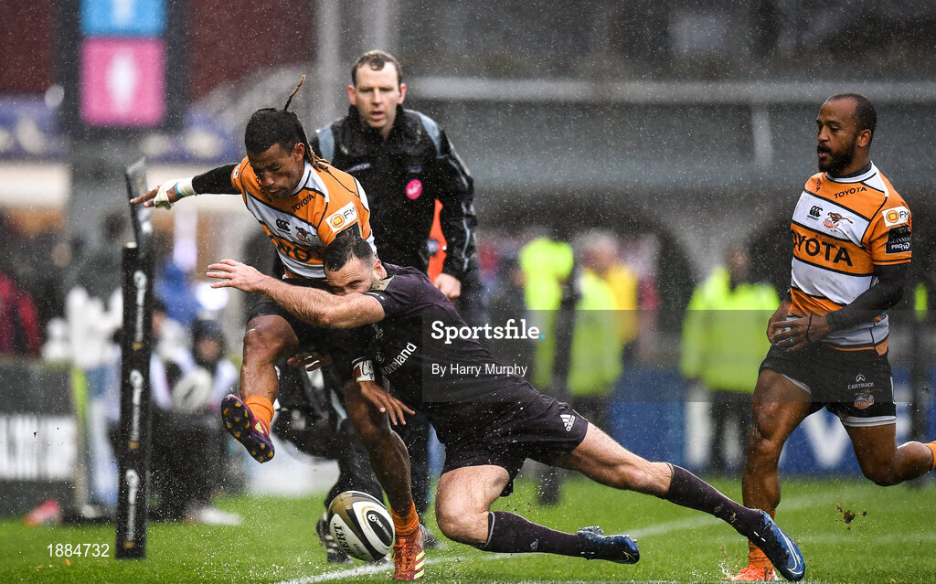 15 February 2020; Clayton Blommetjies of Toyota Cheetahs is tackled by Dave Kearney of Leinster during the Guinness PRO14 Round 11 match between Leinster and Toyota Cheetahs at the RDS Arena in Dublin. Photo by Harry Murphy/Sportsfile