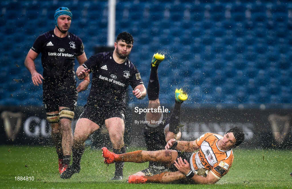 15 February 2020; Benhard Janse van Rensburg of Toyota Cheetahs is tackled by Fergus McFadden of Leinster during the Guinness PRO14 Round 11 match between Leinster and Toyota Cheetahs at the RDS Arena in Dublin. Photo by Harry Murphy/Sportsfile