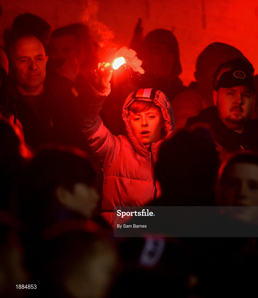 14 February 2020; Supporters let of flares ahead of the SSE Airtricity League Premier Division match between St Patrick's Athletic and Waterford United at Richmond Park in Dublin. Photo by Sam Barnes/Sportsfile