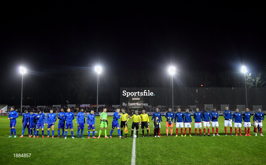 14 February 2020; Players from both sides shake hands ahead of the SSE Airtricity League Premier Division match between St Patrick's Athletic and Waterford United at Richmond Park in Dublin. Photo by Sam Barnes/Sportsfile