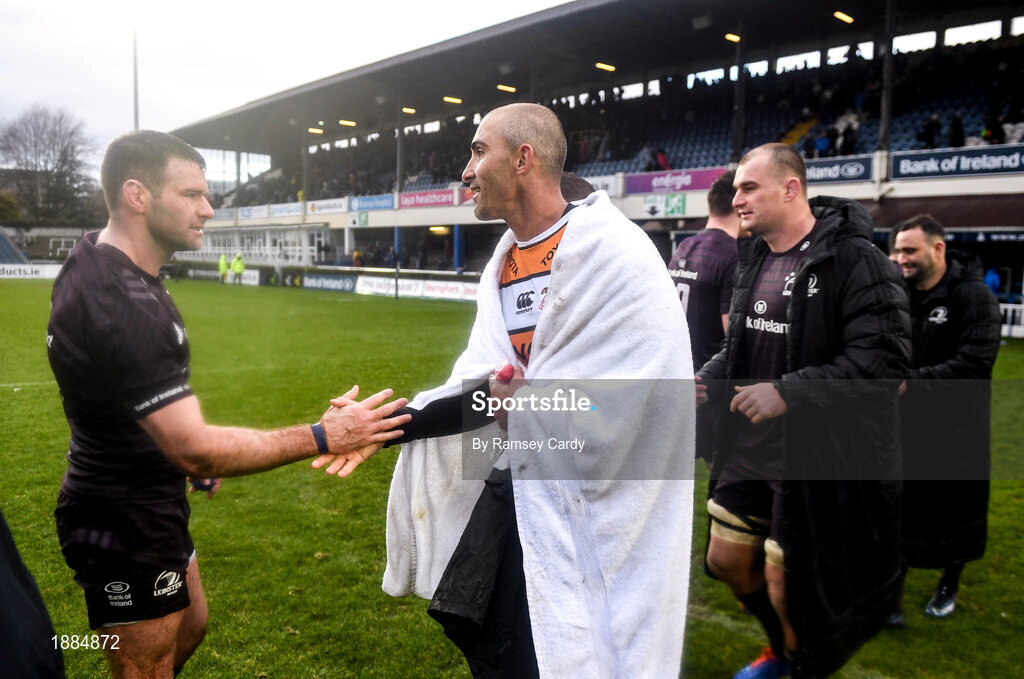 15 February 2020; Ruan Pienaar of Toyota Cheetahs and Fergus McFadden of Leinster after the Guinness PRO14 Round 11 match between Leinster and Toyota Cheetahs at the RDS Arena in Dublin. Photo by Ramsey Cardy/Sportsfile