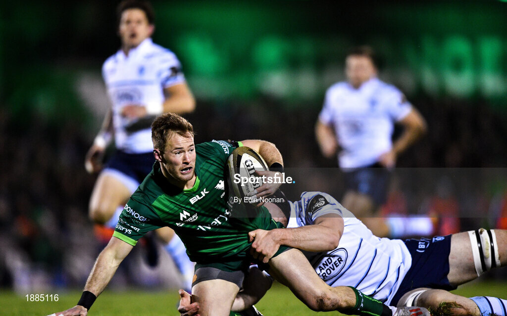 15 February 2020; Kieran Marmion of Connacht is tackled by James Ratti of Cardiff Blues during the Guinness PRO14 Round 11 match between Connacht and Cardiff Blues at the Sportsground in Galway. Photo by Eóin Noonan/Sportsfile