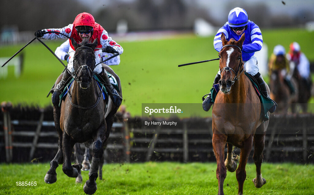 16 February 2020; Jungle Junction, with Robert Power up, left, on their way to winning the Get Your 2020 Navan Membership Maiden Hurdle ahead of The Priests Leap, with Donagh Meyler up, at Navan Racecourse in Navan, Meath. Photo by Harry Murphy/Sportsfile