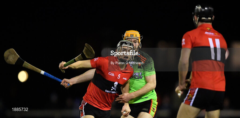 12 February 2020; Mark Coleman of UCC, supported by team-mate Conor Boylan in action against Podge Delaney of IT Carlow during the Fitzgibbon Cup Final match between UCC and IT Carlow at Dublin City University Sportsgrounds in Glasnevin, Dublin. Photo by Piaras Ó Mídheach/Sportsfile