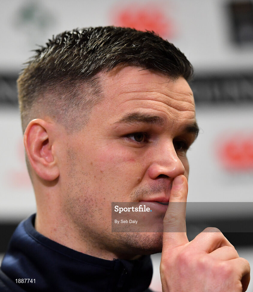 21 February 2020; Jonathan Sexton during an Ireland Rugby press conference at the IRFU High Performance Centre at the Sport Ireland Campus in Dublin. Photo by Seb Daly/Sportsfile