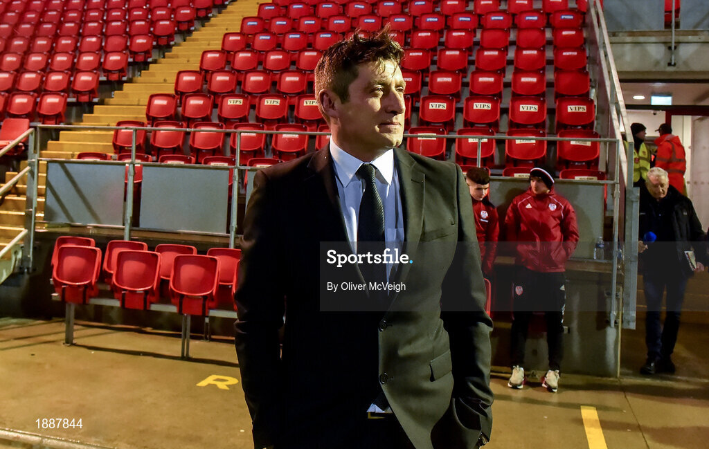 21 February 2020; Derry City manager Declan Devine before the SSE Airtricity League Premier Division match between Derry City and Finn Harps at Ryan McBride Brandywell Stadium in Derry. Photo by Oliver McVeigh/Sportsfile