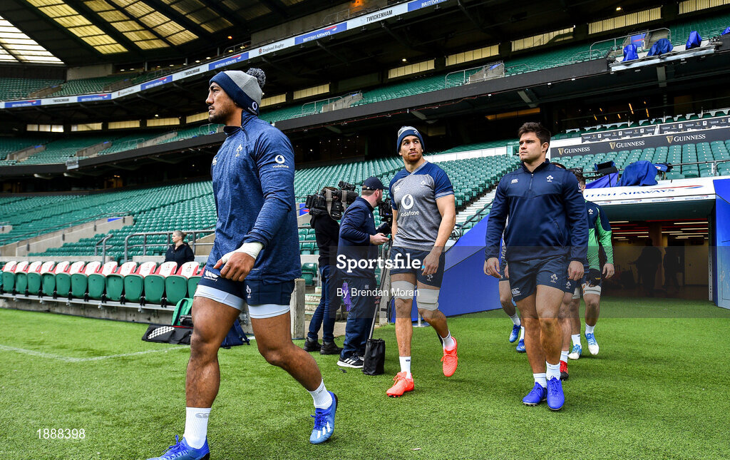 22 February 2020; Bundee Aki, left, Ultan Dillane and Dave Heffernan arrive for the Ireland Rugby Captain's Run at Twickenham Stadium in London, England. Photo by Brendan Moran/Sportsfile