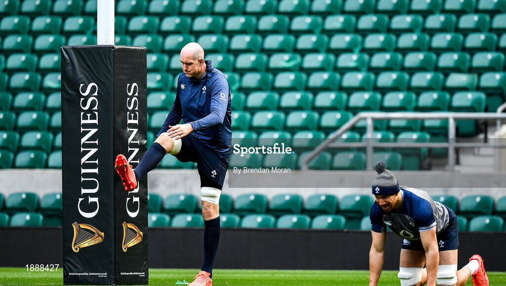 22 February 2020; Devin Toner, left, and Ultan Dillane during the Ireland Rugby Captain's Run at Twickenham Stadium in London, England. Photo by Brendan Moran/Sportsfile