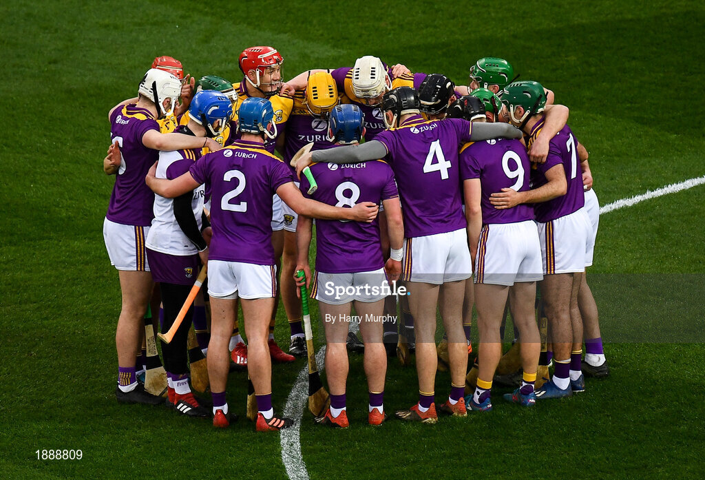 22 February 2020; Wexford players huddle prior to the Allianz Hurling League Division 1 Group B Round 4 match between Dublin and Wexford at Croke Park in Dublin. Photo by Harry Murphy/Sportsfile