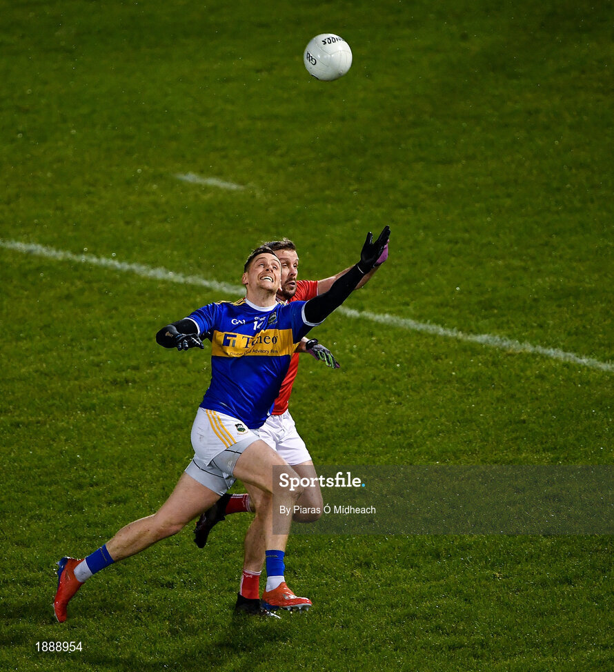 22 February 2020; Conor Sweeney of Tipperary in action against James Loughrey of Cork during the Allianz Football League Division 3 Round 4 match between Tipperary and Cork at Semple Stadium in Thurles, Tipperary. Photo by Piaras Ó Mídheach/Sportsfile