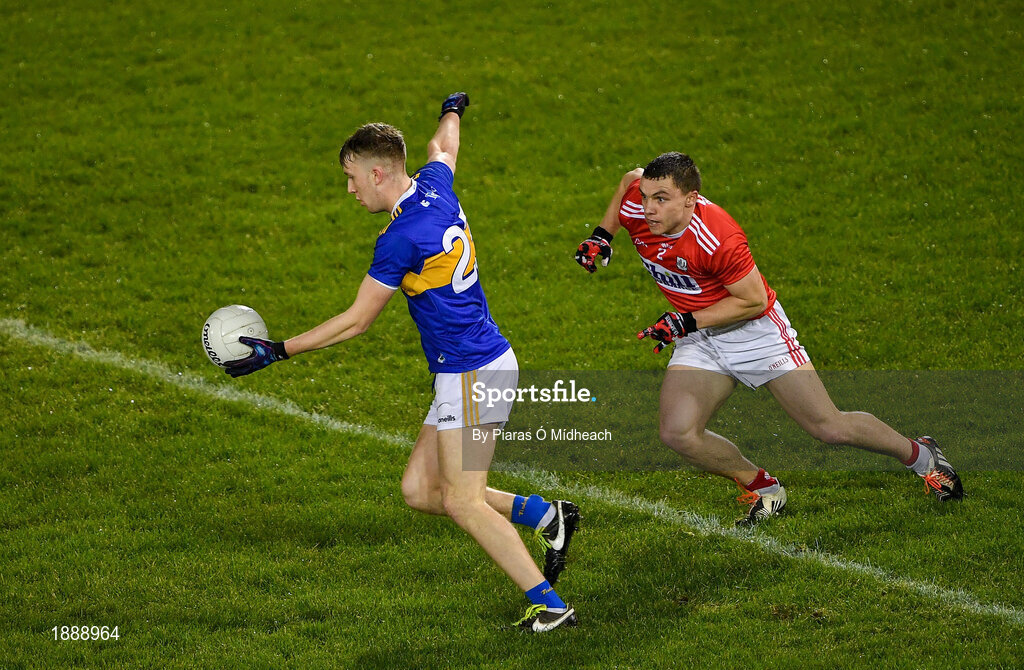22 February 2020; Riain Quigley of Tipperary in action against Seán Powter of Cork during the Allianz Football League Division 3 Round 4 match between Tipperary and Cork at Semple Stadium in Thurles, Tipperary. Photo by Piaras Ó Mídheach/Sportsfile