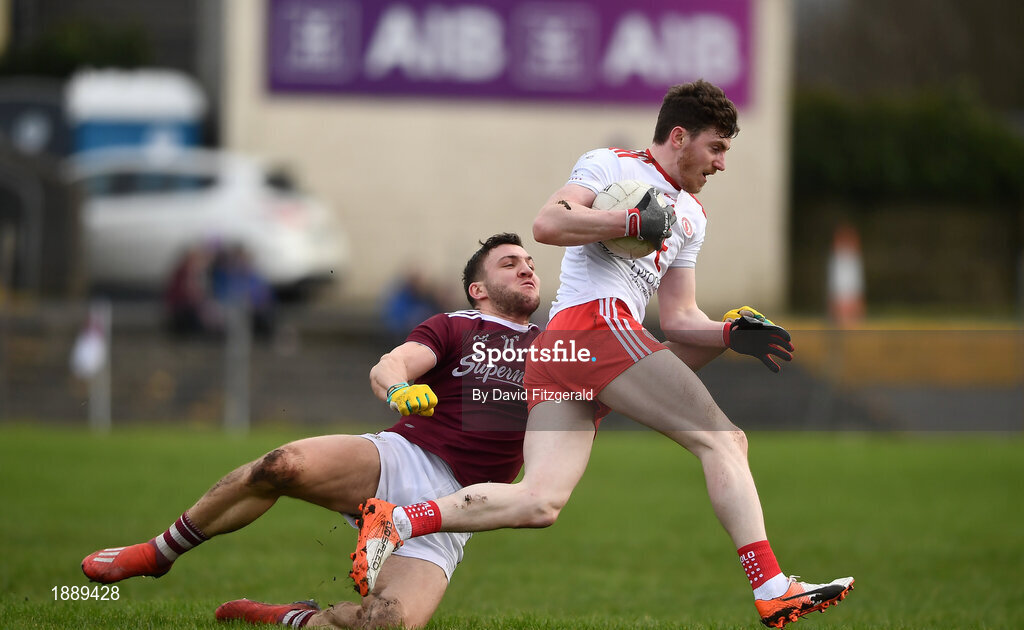23 February 2020; Rory Brennan of Tyrone is tackled by Damien Comer of Galway during the Allianz Football League Division 1 Round 4 match between Galway and Tyrone at Tuam Stadium in Tuam, Galway. Photo by David Fitzgerald/Sportsfile