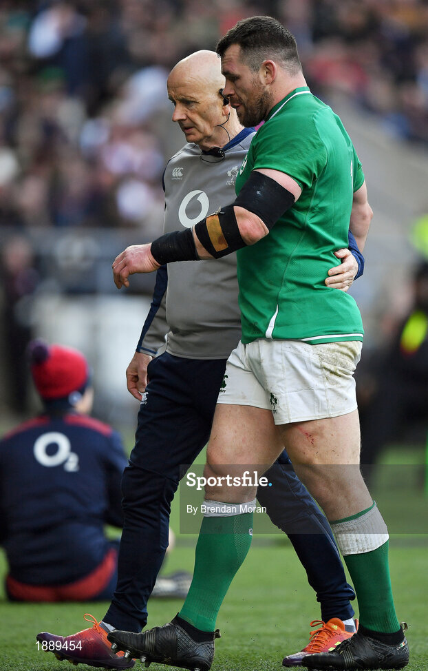 23 February 2020; Cian Healy of Ireland leaves the field with an injury during the Guinness Six Nations Rugby Championship match between England and Ireland at Twickenham Stadium in London, England. Photo by Brendan Moran/Sportsfile Photo by Brendan Moran/Sportsfile