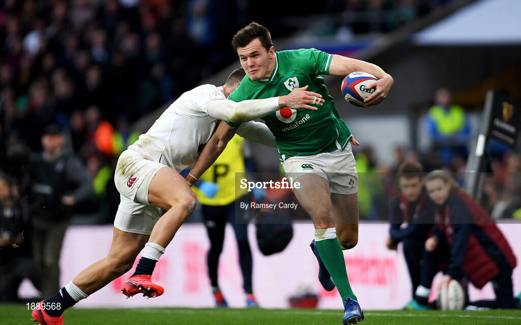 23 February 2020; Jacob Stockdale of Ireland is tackled by Jonny May of England during the Guinness Six Nations Rugby Championship match between England and Ireland at Twickenham Stadium in London, England. Photo by Ramsey Cardy/Sportsfile