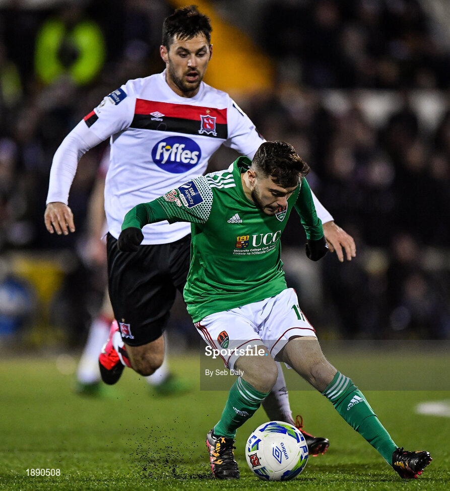 24 February 2020; Cory Galvin of Cork City in action against Patrick Hoban of Dundalk during the SSE Airtricity League Premier Division match between Dundalk and Cork City at Oriel Park in Dundalk, Louth. Photo by Seb Daly/Sportsfile