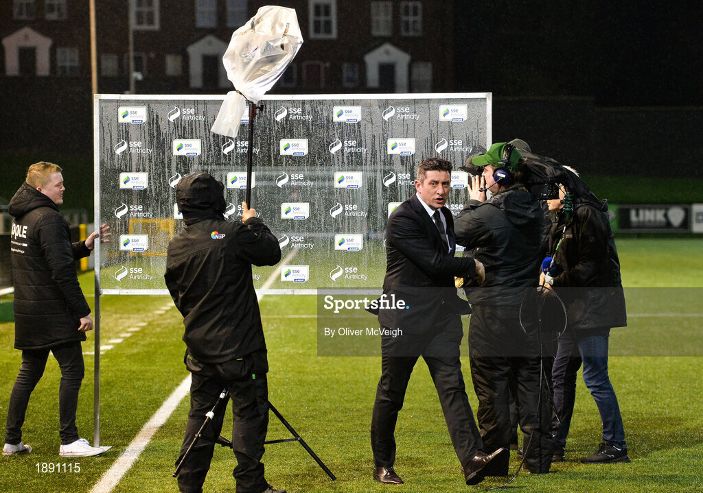 21 February 2020; A General view of Derry City manager leaving the RTE pre match interview before the SSE Airtricity League Premier Division match between Derry City and Finn Harps at Ryan McBride Brandywell Stadium in Derry. Photo by Oliver McVeigh/Sportsfile