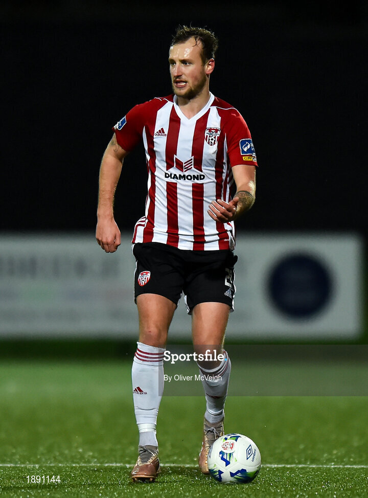 21 February 2020; Ally Gilchrist of Derry City during the SSE Airtricity League Premier Division match between Derry City and Finn Harps at Ryan McBride Brandywell Stadium in Derry. Photo by Oliver McVeigh/Sportsfile