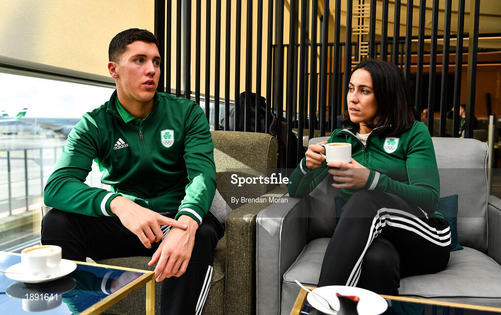 26 February 2020; The Olympic Federation of Ireland will fly athletes in business class to the Olympic Games in Tokyo with Qatar Airways. With less than five months left until the Opening Ceremony in Tokyo, the composition of Team Ireland is starting to take real shape. Qatar Airways has a 5 star rating by Skytrax, which also awarded the airline 'World's Best Business Class'. Athletes will benefit from the full lie flat beds and catering to suit their nutritional routine. The mood lighting will adjust the athletes' body clock to the Tokyo time zone and the cabin is pressureised to a lower altitude which equates to more oxygen and less travel fatigue. In attendance at the announcement are hockey player Anna O'Flanagan and swimmer Darragh Greene. Photo by Brendan Moran/Sportsfile