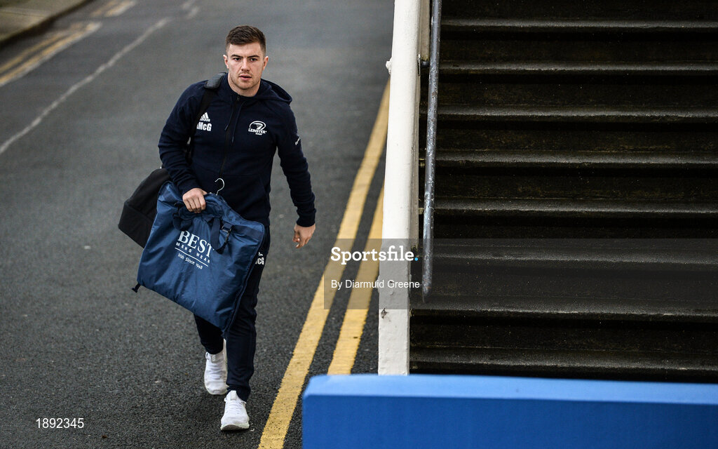 28 February 2020; Luke McGrath of Leinster arrives for the Guinness PRO14 Round 13 match between Leinster and Glasgow Warriors at the RDS Arena in Dublin. Photo by Diarmuid Greene/Sportsfile