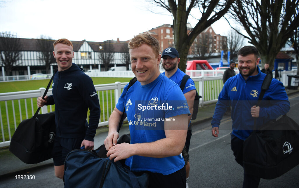 28 February 2020; Leinster players Ciaran Frawley, James Tracy, Michael Milne, and Conor Maguire arrive ahead of the Guinness PRO14 Round 13 match between Leinster and Glasgow Warriors at the RDS Arena in Dublin. Photo by Diarmuid Greene/Sportsfile