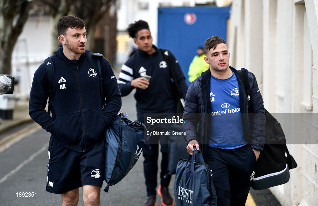 28 February 2020; Leinster players Hugo Keenan, Joe Tomane and Rowan Osborne arrive for the Guinness PRO14 Round 13 match between Leinster and Glasgow Warriors at the RDS Arena in Dublin. Photo by Diarmuid Greene/Sportsfile