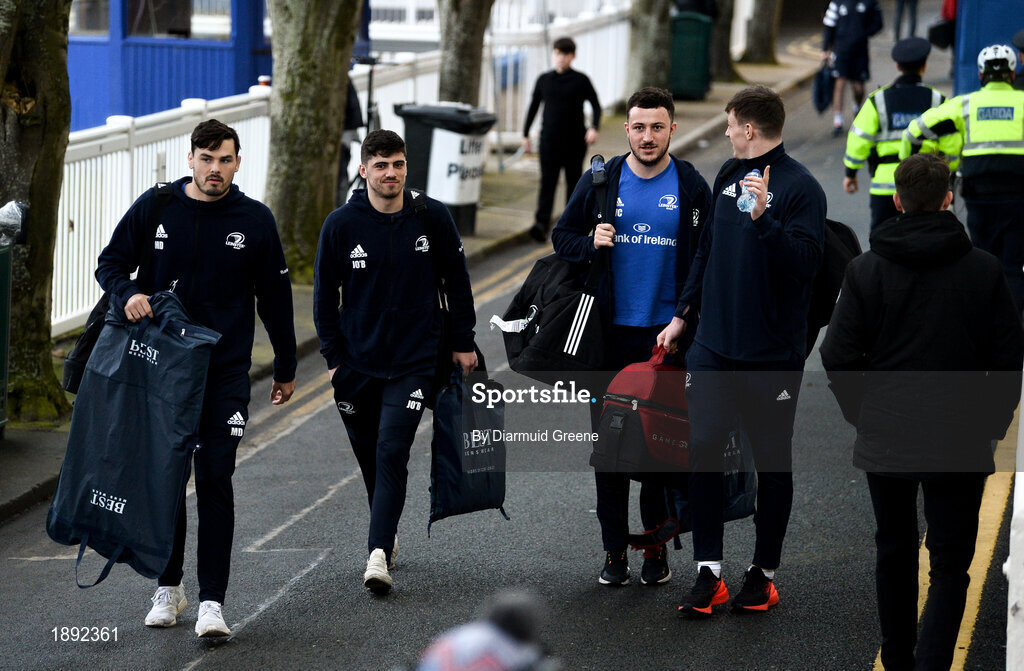 28 February 2020; Leinster players Max Deegan, Jimmy O'Brien, Will Connors, and Ryan Baird arrive for the Guinness PRO14 Round 13 match between Leinster and Glasgow Warriors at the RDS Arena in Dublin. Photo by Diarmuid Greene/Sportsfile