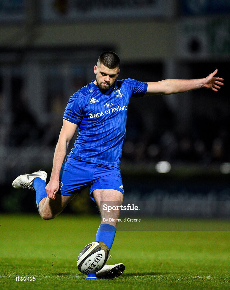 28 February 2020; Harry Byrne of Leinster kicks a conversion during the Guinness PRO14 Round 13 match between Leinster and Glasgow Warriors at the RDS Arena in Dublin. Photo by Diarmuid Greene/Sportsfile