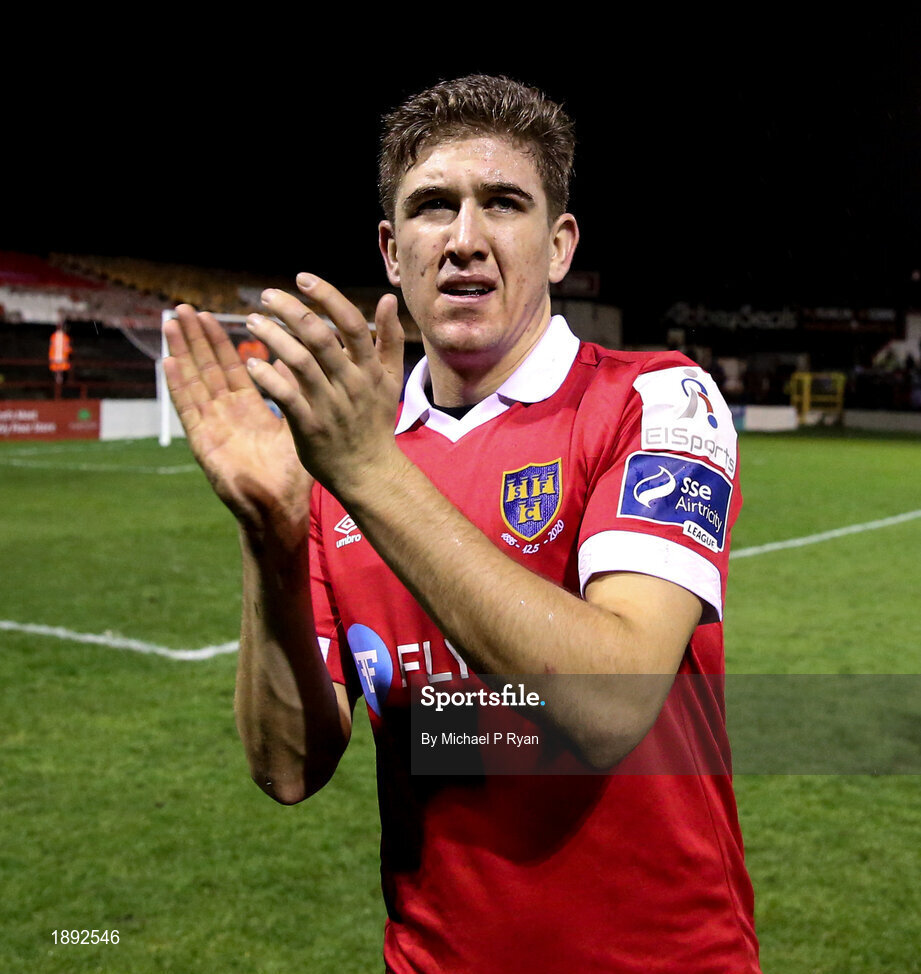28 February 2020; Oscar Brennan of Shelbourne celebrates following the SSE Airtricity League Premier Division match between Shelbourne and St Patrick's Athletic at Tolka Park in Dublin. Photo by Michael P Ryan/Sportsfile