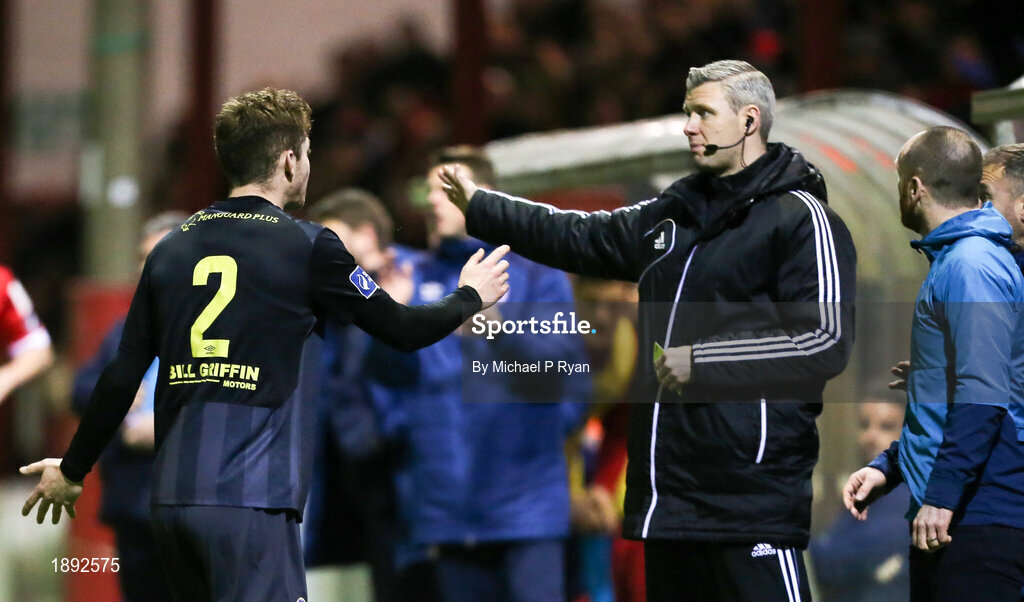 28 February 2020; Rory Feely of St Patrick's Athletic reacts after been shown a red card by referee Sean Grant during the SSE Airtricity League Premier Division match between Shelbourne and St Patrick's Athletic at Tolka Park in Dublin. Photo by Michael P Ryan/Sportsfile