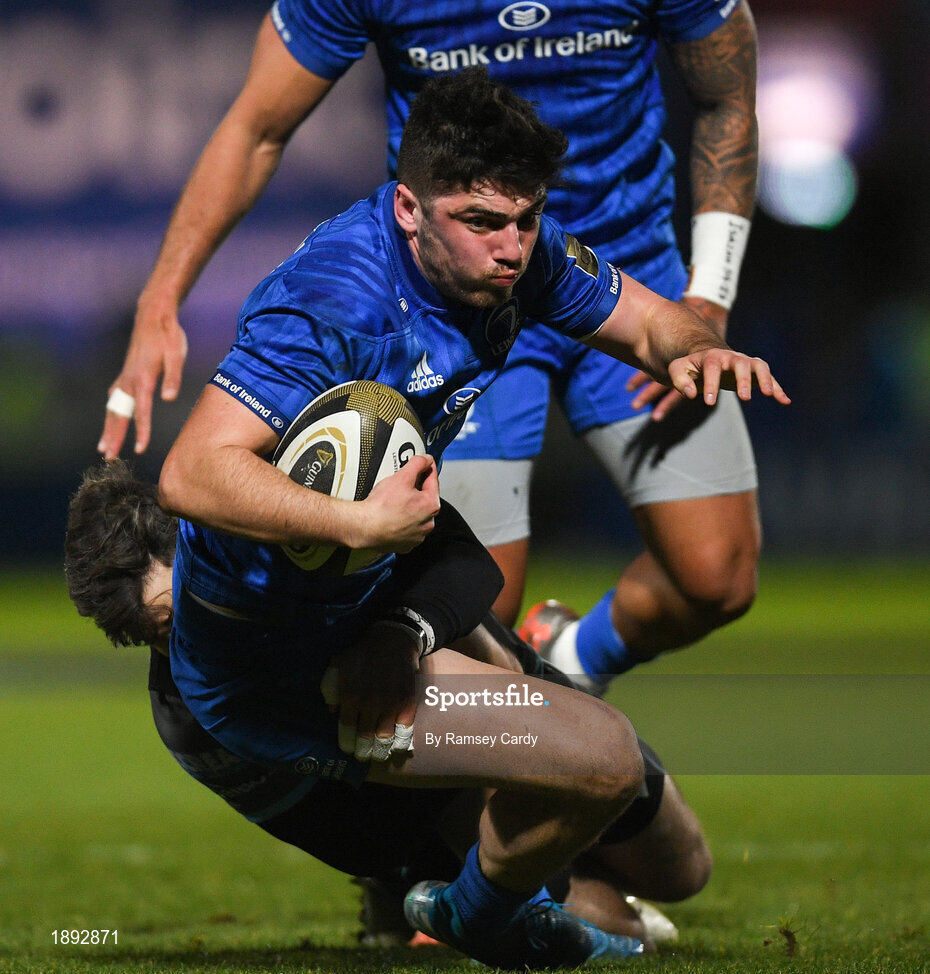 28 February 2020; Jimmy O'Brien of Leinster is tackled by Huw Jones of Glasgow Warriors during the Guinness PRO14 Round 13 match between Leinster and Glasgow Warriors at the RDS Arena in Dublin. Photo by Ramsey Cardy/Sportsfile