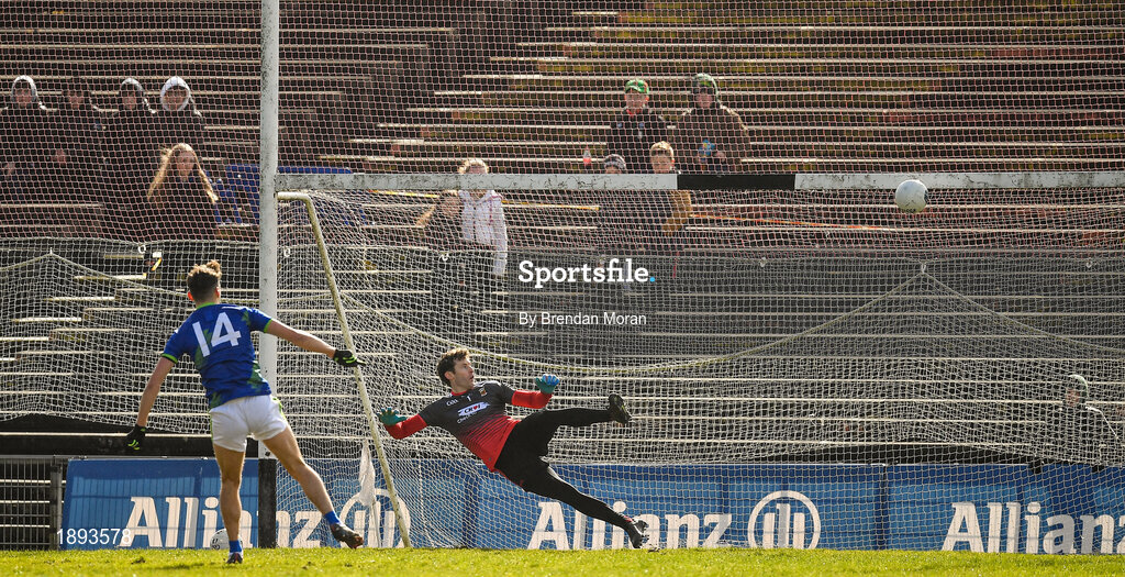 1 March 2020; David Clifford of Kerry hits the crossbar with a penalty during the Allianz Football League Division 1 Round 5 match between Mayo and Kerry at Elverys MacHale Park in Castlebar, Mayo. Photo by Brendan Moran/Sportsfile