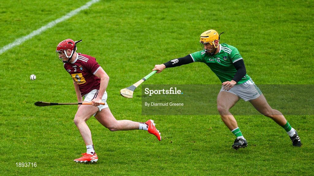 1 March 2020; Darragh Egerton of Westmeath in action against Tom Morrissey of Limerick during the Allianz Hurling League Division 1 Group A Round 5 match between Limerick and Westmeath at LIT Gaelic Grounds in Limerick. Photo by Diarmuid Greene/Sportsfile