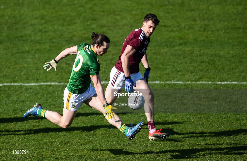 1 March 2020; Cillian O’Sullivan of Meath in action against Ronan Steede of Galway during the Allianz Football League Division 1 Round 5 match between Meath and Galway at Páirc Tailteann in Navan, Meath. Photo by Daire Brennan/Sportsfile