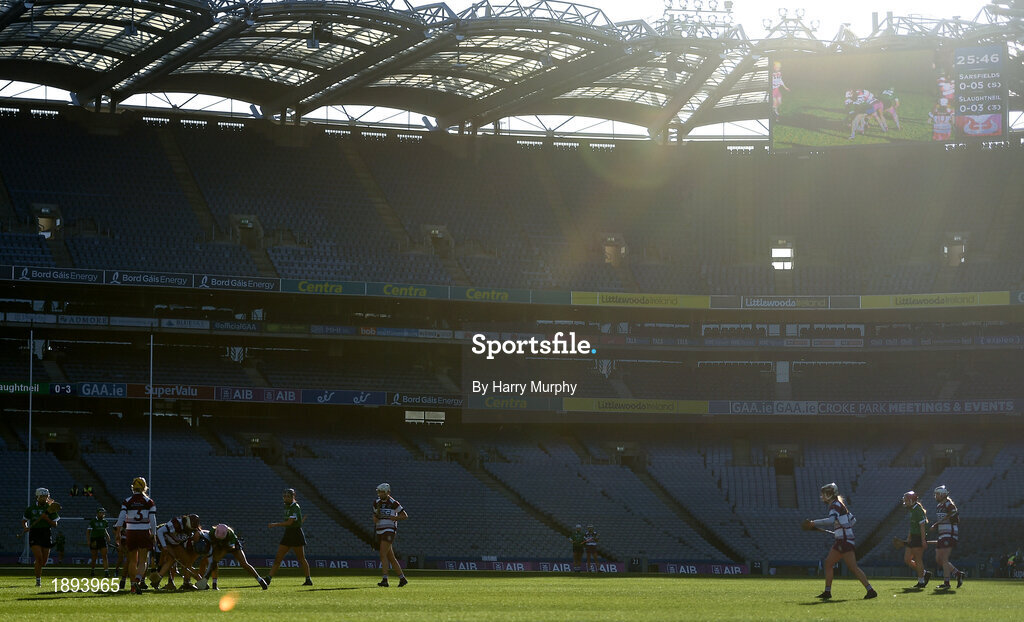 1 March 2020; A General view of match action during the AIB All-Ireland Senior Camogie Club Championship Final match between Sarsfields and Slaughtneil at Croke Park in Dublin. Photo by Harry Murphy/Sportsfile