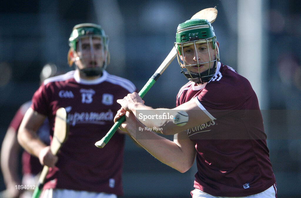 1 March 2020; Niall Burke of Galway scores a point during the Allianz Hurling League Division 1 Group A Round 5 match between Galway and Cork at Pearse Stadium in Salthill, Galway. Photo by Ray Ryan/Sportsfile