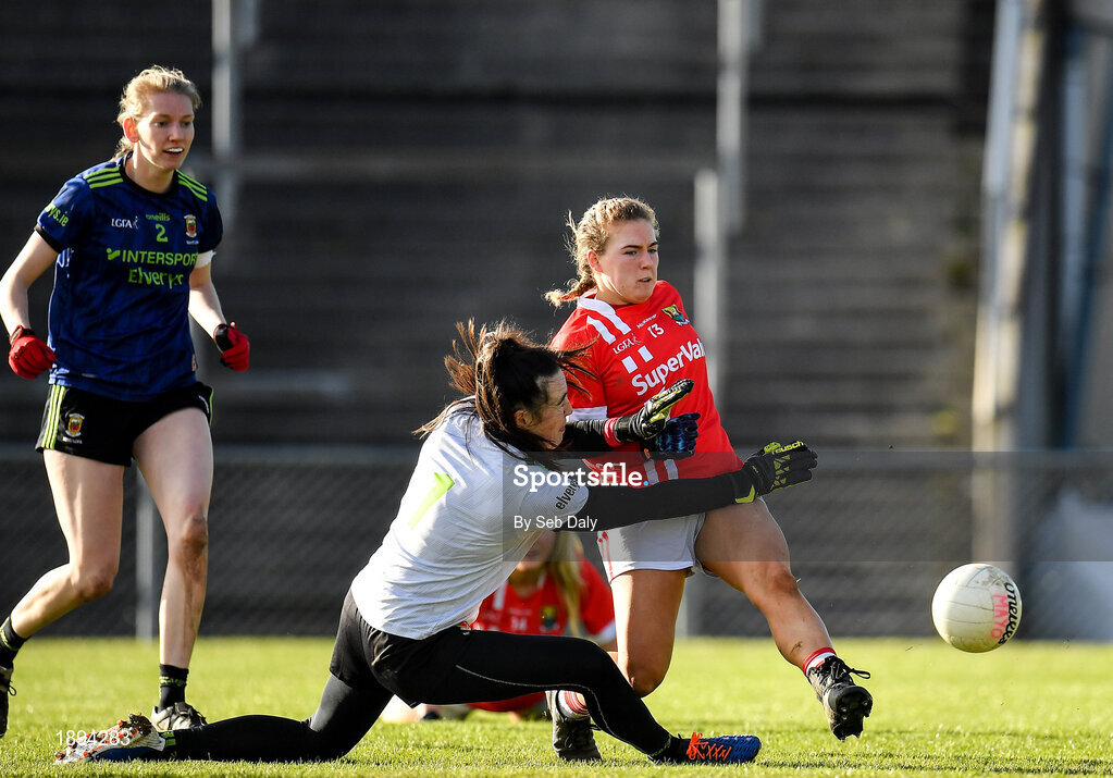 1 March 2020; Libby Coppinger of Cork shoots to score her side's first goal of the game, past Aishling Tarpey of Mayo, during the Lidl Ladies National Football League Division 1 match between Cork and Mayo at Mallow GAA Complex in Cork. Photo by Seb Daly/Sportsfile